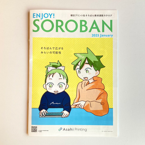 朝日プリント社そろばん教材通販カタログ2026年1月号、カバーイラスト、漫画を担当
